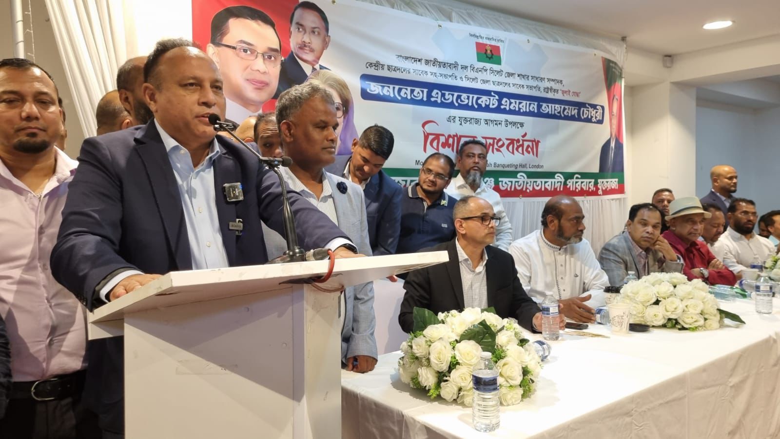সোমবার ৭ জুলাই, যুক্তরাজ্য বাংলাদেশ জাতীয়তাবাদী দল বিএনপি সিলেট জেলা শাখার সাধারণ সম্পাদক, কেন্দ্রীয় ছাত্রদলের সাবেক সহ-সভাপতি ও সিলেট জেলা ছাত্রদলের সাবেক সভাপতি জননেতা এডভোকেট এমরান আহমেদ চৌধুরী এর যুক্তরাজ্য সফর উপলক্ষে যুক্তরাজ্যে বসবাসরত গোলাপগঞ্জ বিয়ানীবাজার জাতীয়তাবাদী পরিবারের পক্ষ থেকে যুক্তরাজ্য মায়েদা গ্রীল ভেন্যু ইষ্ট লন্ডন মসজিদের পিছনে বিশাল সংবর্ধনা সভায় তিনি এ কথা বলেন।